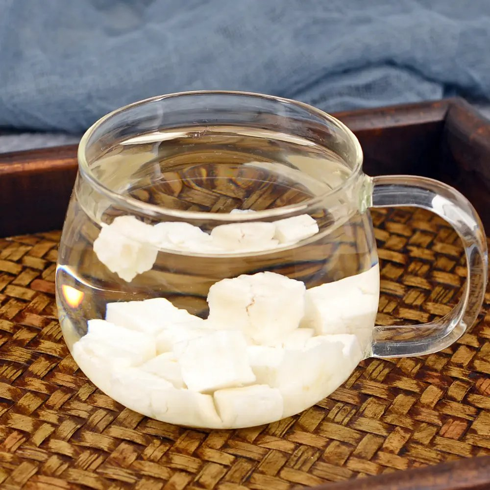 做法:茯苓洗净,放入杯中,倒入开水适量,泡5-10分钟。每日总量控制在10-15克。