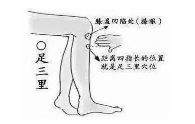 足三里是足阳明胃经的合穴,位于小腿前外侧,当犊鼻穴(外膝眼)下3寸,距胫骨前缘一横指。按揉此穴可燥化脾湿、温中散寒。